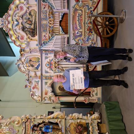 Draaiorgelmuseum Haarlem mocht zondagmiddag 5 oktober tijdens de opening en op de dag af dat het museum zijn 56-jarig bestaan vierde, een cheque in ontvangst nemen.